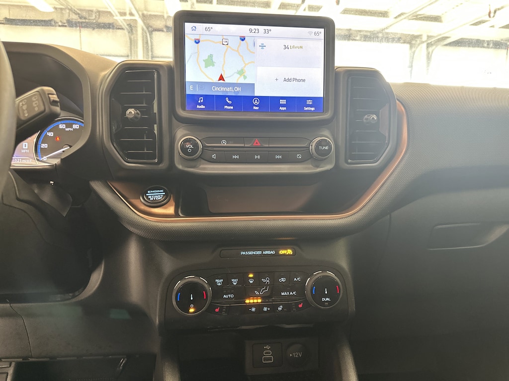 THIS VEHICLE ALSO HAS THE FOLLOWING OPTIONS AND FEATURES:Equipment Group 300A, Ford Co-Pilot360 Assist+ (Evasive Steering Assist, Intelligent Adaptive Cruise Control w/Stop & Go, and Voice-Activated Touchscreen Navigation System), Tech Package (HD Radio, Universal Garage Door Opener (UGDO), and Wireless Charging Pad), Bronco Sport Outer Banks, 4D Sport Utility, 4WD, Ebony w/Premium Trimmed Front Sport Contour Bucket Seats, Delay-off headlights, Electronic Stability Control, Radio data system, Rear Parking Sensors, SiriusXM, SYNC 3 Communications & Entertainment System, Wheels: 18" Ebony Black-Painted Aluminum, 3.80 Axle Ratio, 4-Wheel Disc Brakes, 6 Speakers, ABS brakes, Air Conditioning, Alloy wheels, AM/FM radio: SiriusXM, AM/FM Stereo, Auto High-beam Headlights, Auto-dimming Rear-View mirror, Automatic temperature control, Brake assist, Cargo Mat, Compass, Driver door bin, Driver vanity mirror, Dual front impact airbags, Dual front side impact airbags, Emergency communication system: SYNC 3 911 Assist, Four wheel independent suspension, Front & Rear Floor Liners w/Carpet Mats, Front anti-roll bar, Front Bucket Seats, Front Center Armrest, Front dual zone A/C, Front fog lights, Front License Plate Bracket, Front reading lights, Fully automatic headlights, Heated door mirrors, Heated front seats, Heated steering wheel, Illuminated entry, Knee airbag, Low tire pressure warning, Memory seat, Occupant sensing airbag, Outside temperature display, Overhead airbag, Overhead console, Panic alarm, Passenger door bin, Passenger vanity mirror, Power door mirrors, Power driver seat, Power passenger seat, Power steering, Power windows, Premium-Trimmed Heated Sport Contour Bucket Seats, Rain sensing wipers, Rear anti-roll bar, Rear reading lights, Rear seat center armrest, Rear window defroster, Rear window wiper, Remote keyless entry, Security system, Speed control, Speed-sensing steering, Speed-Sensitive Wipers, Split folding rear seat, Steering wheel mounted audio controls, Tachometer, Telescoping steering wheel, Tilt steering wheel, Traction control, Trip computer, and Variably intermittent wipers.