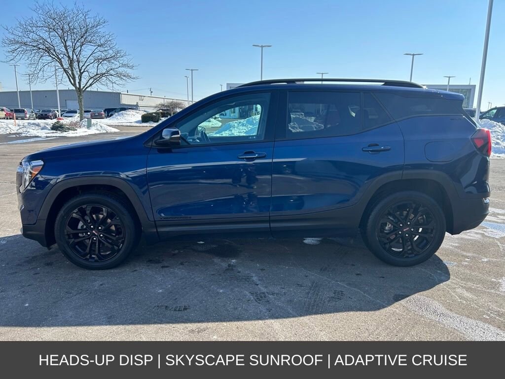 Wrapped in a stunning Blue exterior, the Terrain SLT commands attention with its bold and confident presence. The Elevation Edition adds a touch of sophistication, featuring 19-inch gloss black aluminum wheels, a darkened front grille, and black exterior accents that exude a refined and modern aesthetic.