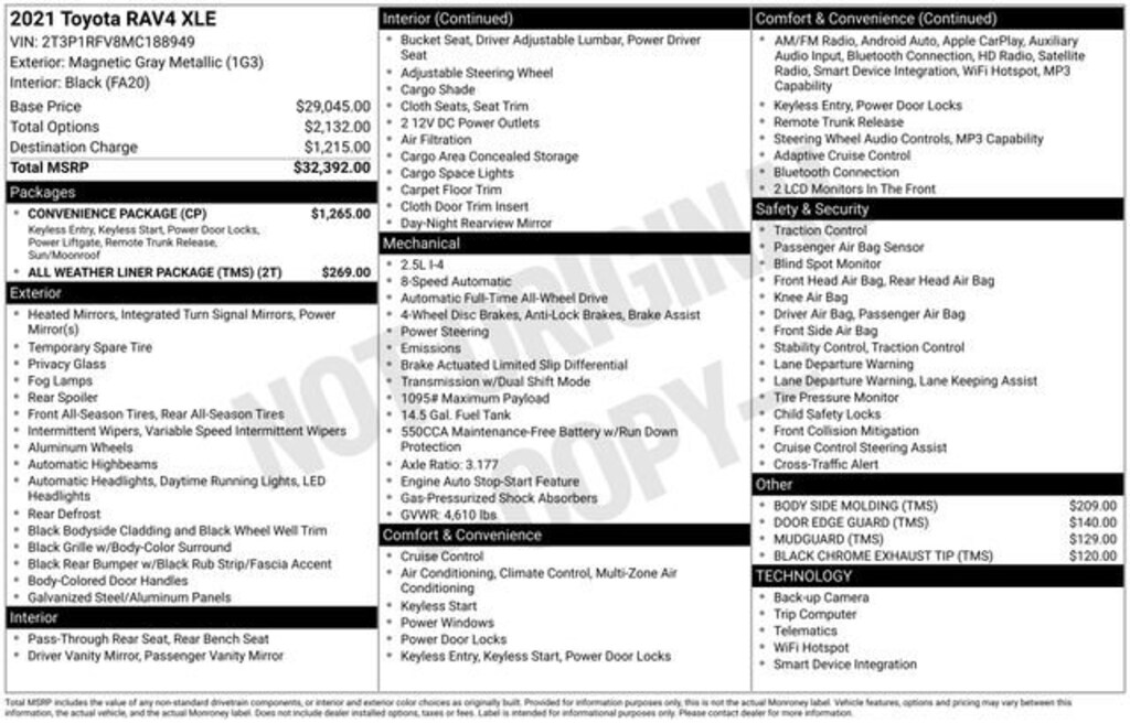 * Although every reasonable effort has been made to ensure the accuracy of the information contained on this site, absolute accuracy cannot be guaranteed. All vehicles are subject to prior sale. Price does not include applicable tax, title, license, and a $398.00 documentation fee or other fees required by law, lending institutions, and/or lessors. Vehicles shown at different locations are not currently in our inventory (not in stock) but can be made available at our location within a reasonable time after your request.